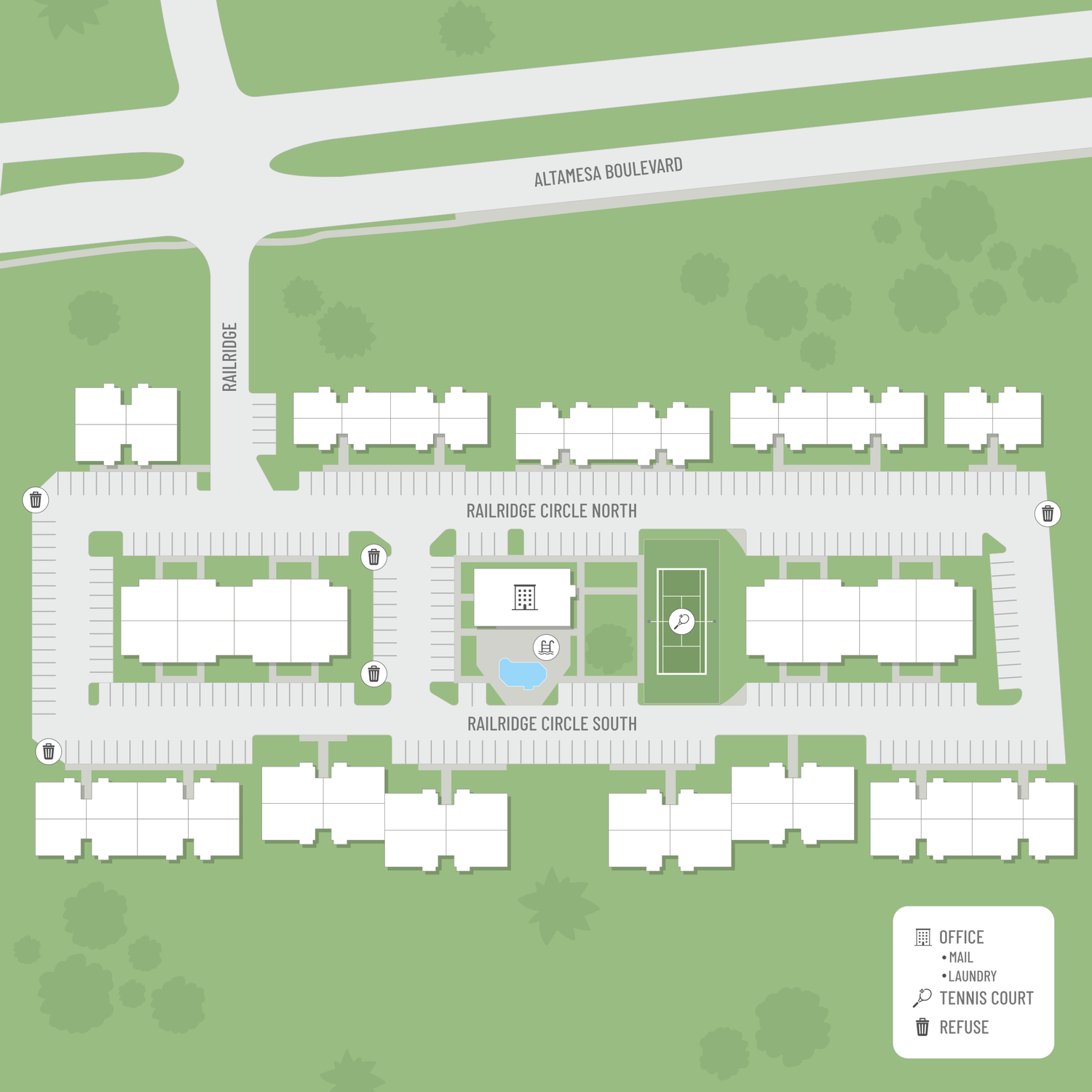 At Railridge Apartments, the experience extends well beyond your home with amenities designed to create a welcoming environment. Lounge by the resort-style pool, energize your routine in the state-of-the-art fitness center, or enjoy friendly competition on the tennis and basketball courts. Gather with neighbors in the inviting clubhouse, host a Texas-style barbecue at the grill and picnic area, or let younger residents make friends and explore at the playground. With on-site laundry facilities, responsive maintenance, and a pet-friendly atmosphere that welcomes cats and select dog breeds, Railridge Apartments creates a lifestyle that feels both effortless and inspired.